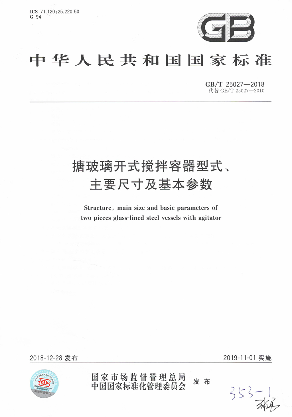 • 參與制定搪玻璃開(kāi)式攪拌容器國(guó)家標(biāo)準(zhǔn)
